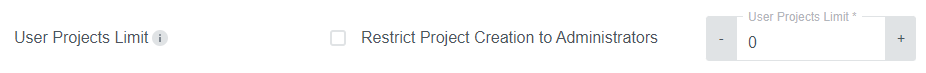 that regular users will be able to create. The User Projects Limit is controlled on a per-user basis and affects